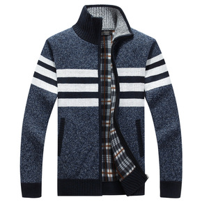 2021冬装男士加绒加厚大码潮流针织衫外套立领开衫...