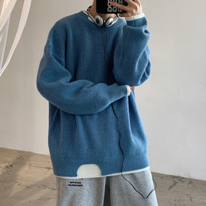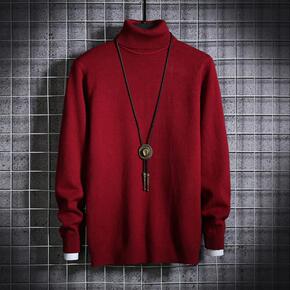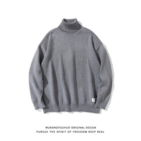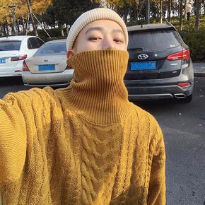 2021秋冬高领毛衣男宽松潮流纯色套头线衣港风休闲...