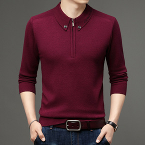 秋冬季中年男士长袖针织衫羊毛T恤中老年人爸爸装大码...