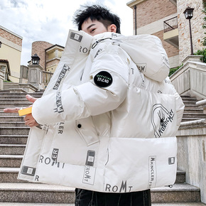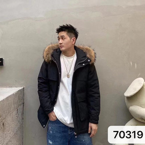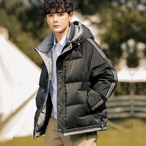 2021冬季新款连帽带毛领青年男士时尚简约潮流白鸭...