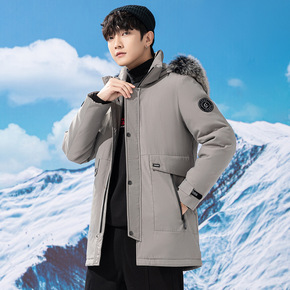 2021新款工装羽绒服男中长款连帽冬季白鸭绒御寒保...