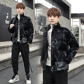 羽绒服外贸中长款2021新款男士迷彩防寒保暖加厚冬...