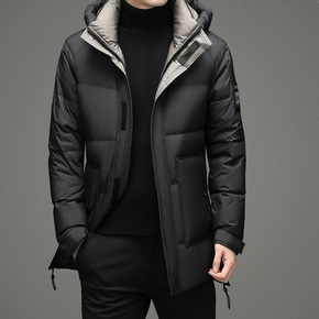 中长款羽绒服男士冬季新款保暖连帽韩版潮流白鸭绒加厚...