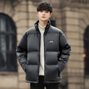 2021冬季新款羽绒服青年男式中长款纯色休闲连帽加...
