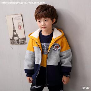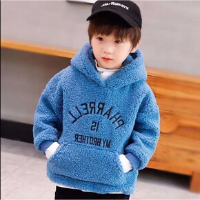 童装男童加绒卫衣儿童连帽加厚仿羊羔绒中大童洋气秋冬...