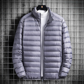 新款男士格纹印花短运动羽绒服男冬装加厚鸭绒外套代发...