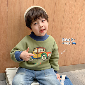 男童加绒卫衣秋冬儿童女宝宝1岁3加厚保暖上衣小童婴...