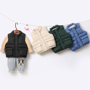 秋冬新款儿童羽绒棉马甲男童女童外穿加厚背心宝宝立领...