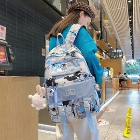 双肩包2021新款个性涂鸦大容量中学生书包潮酷大学...