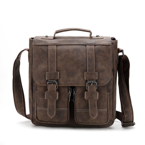 欧美风复古背包旅行男包休闲单肩斜跨包疯马皮PU男士...