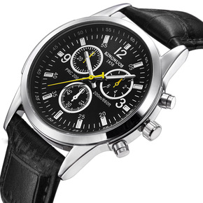 芬尊 正品新款男士多功能时尚商务石英表三眼日历 运...
