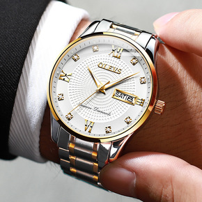 一件代发欧利时品牌时尚钢带全自动机械手表夜光防水男...