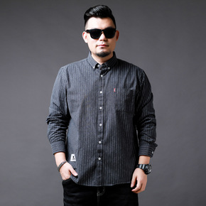 大码商务休闲衬衫男装衬衣条纹印花显瘦胖子肥佬日常上...