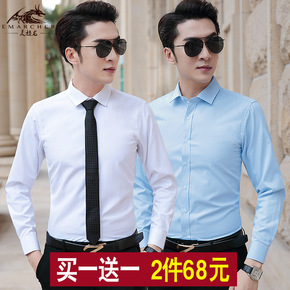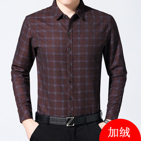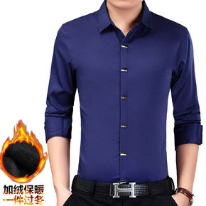 【品牌男装】秋冬新款青中年男修身免烫长袖衬衫纯色大...