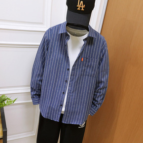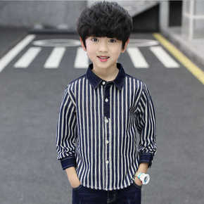 童装男童长袖翻领衬衫2020春秋装新款中大童儿童条...