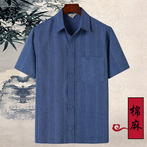 老年人衬衫男长袖爸爸装中老年春夏衣服棉麻大码爷爷衬...
