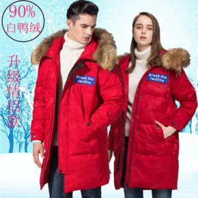 冬季新款情侣款羽绒服中长款韩版休闲保暖大毛领90%...