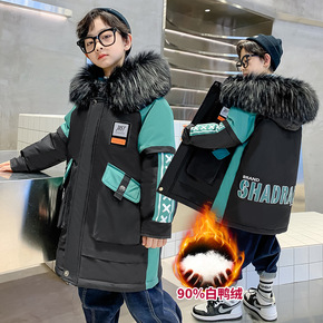 男童羽绒服2021年冬装新款中长款儿童亮面免洗洋气...