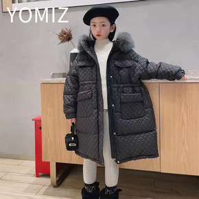 韩国童装白鸭绒菱格羽绒服长款2021冬新男童女童狐...