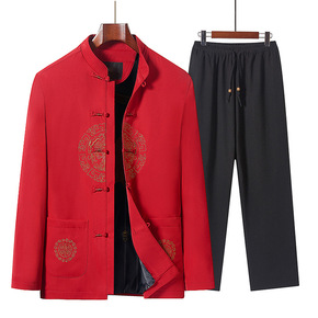 唐装男生日中老年秋冬季外套爸爸装羽绒服老人衣服中国...