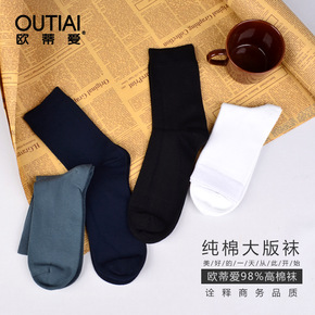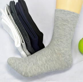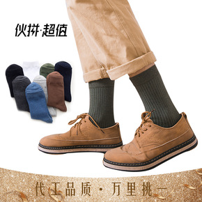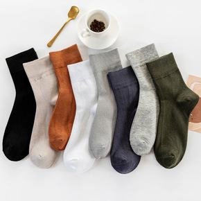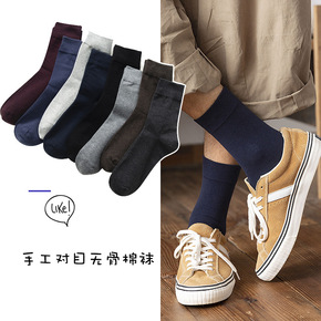 宝娜斯100%纯棉秋冬新品男士休闲棉袜纯色商务中筒...