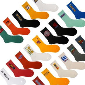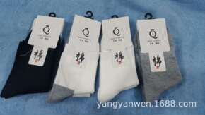 秋冬新品商务男袜休闲刺绣运动袜独立装百分百棉除弹性...