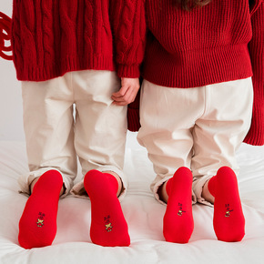 秋冬款新年纳福袜子男士本命年红袜棉结婚大红色袜情侣...