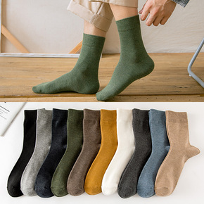 秋冬季男士中腰中厚平面棉袜,吸汗穿着舒适,纯色商务...