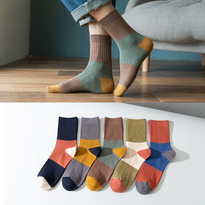 秋冬新款男士拼色中筒棉袜精梳棉商务休闲袜四季潮流i...