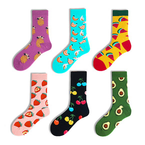 樱桃菠萝长袜子瑞典ins潮牌水果系列男士女士棉中筒...