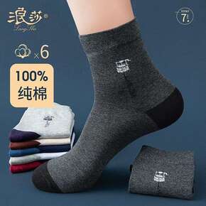浪莎袜子男中筒棉袜 秋冬新款运动休闲防臭吸汗中帮男...