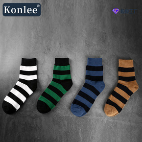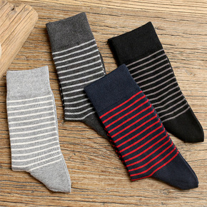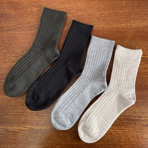 袜子男士秋冬新款纯色竖条纹中筒袜商务男袜日系潮精梳...