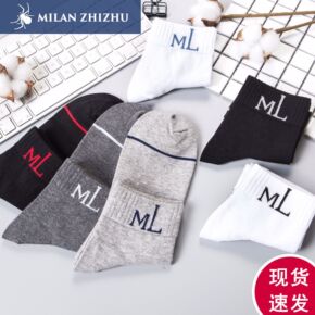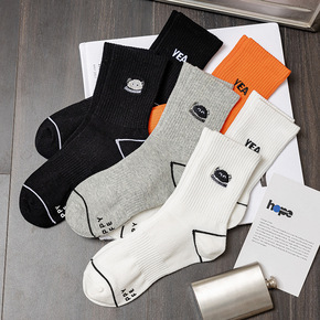 男士棉袜字母带标中筒袜 时尚运动透气吸汗六色中筒男...