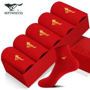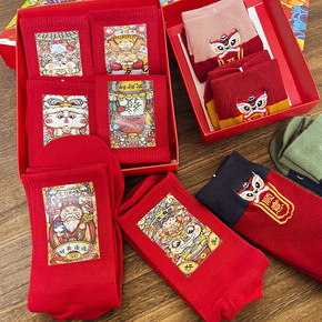 【纯度85】红袜子虎年发财袜男士礼盒装批发纯棉本命...