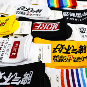 新款男潮袜潮牌欧美街头嘻哈运动女袜滑板长筒袜运动情...