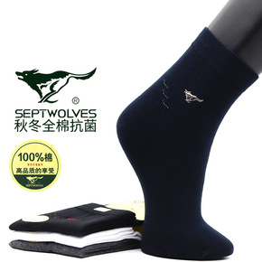 七匹狼纯棉商务男袜秋冬厚款男式袜子男全棉中筒吸汗纯...