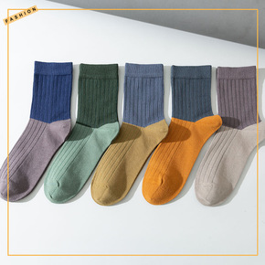 袜子男潮棉质秋冬撞色吸汗男士中筒男袜秋季复古日系棉...