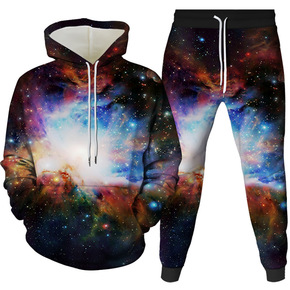 2020外贸新款创意星空3d数码印花打印男女连帽套...