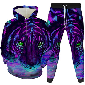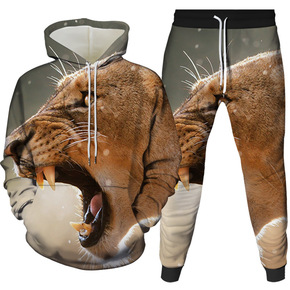 2020外贸新款3d创意狮子数码印花打印男女连帽套...