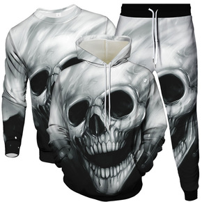 厂家批发3D数码印花新款套头连帽卫衣欧美情侣卫衣鬼...