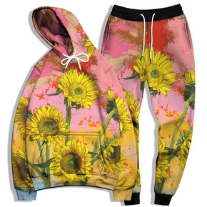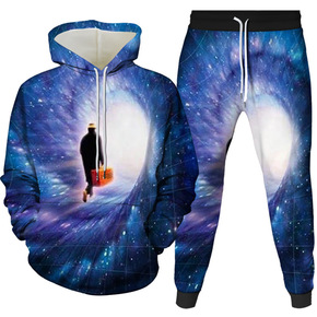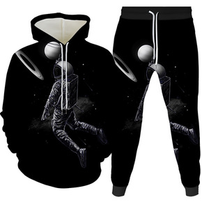 跨境外贸3D宇航员图案冬季套装运动服男士情侣休闲套...