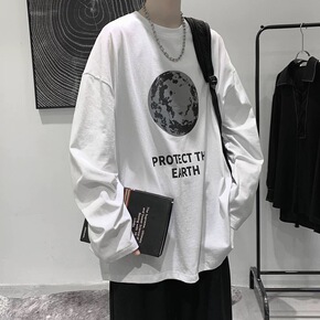 出口日本200g重磅纯棉全棉长袖T恤宽松男女纯色打...