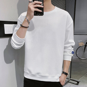 2021新款春秋小白T长袖休闲新疆长绒棉纯色T恤男...