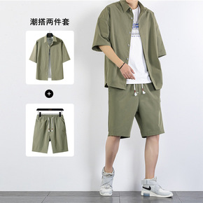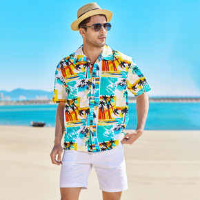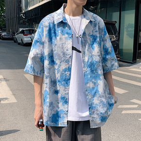 扎染工艺| 夏季新款潮流冰丝短袖衬衫男沙滩外贸跨境...