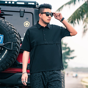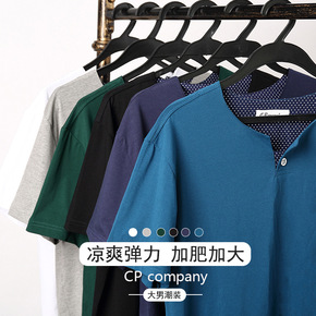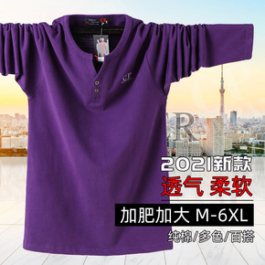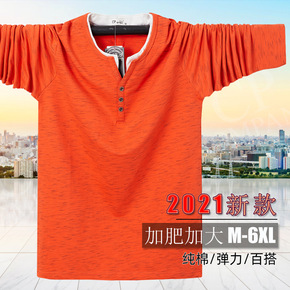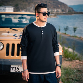 潮牌大码男装加肥加大秋长袖体恤宽松休闲设计感撞色纽...