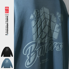 韩路日系男装 2021秋冬新款潮牌卫衣男顺色发泡魔...