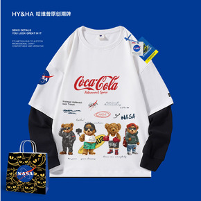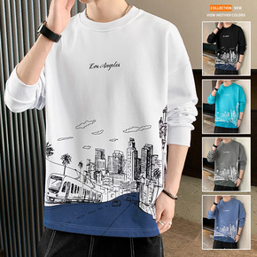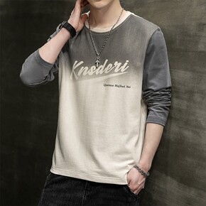 长袖T恤男士春秋季新款宽松圆领卫衣假两件休闲上衣时...