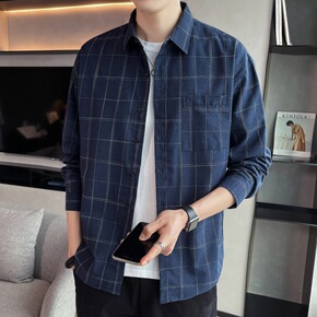 秋季新款长袖韩版男士衬衫商务休闲青年男装潮流时尚翻...