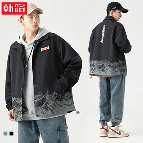 韩路日系男装 2021秋冬新款潮牌教练夹男克雪山印...