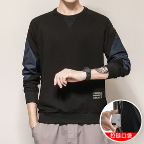 潮流拼色圆领卫衣男士2021秋季新款青年打底秋衣男...